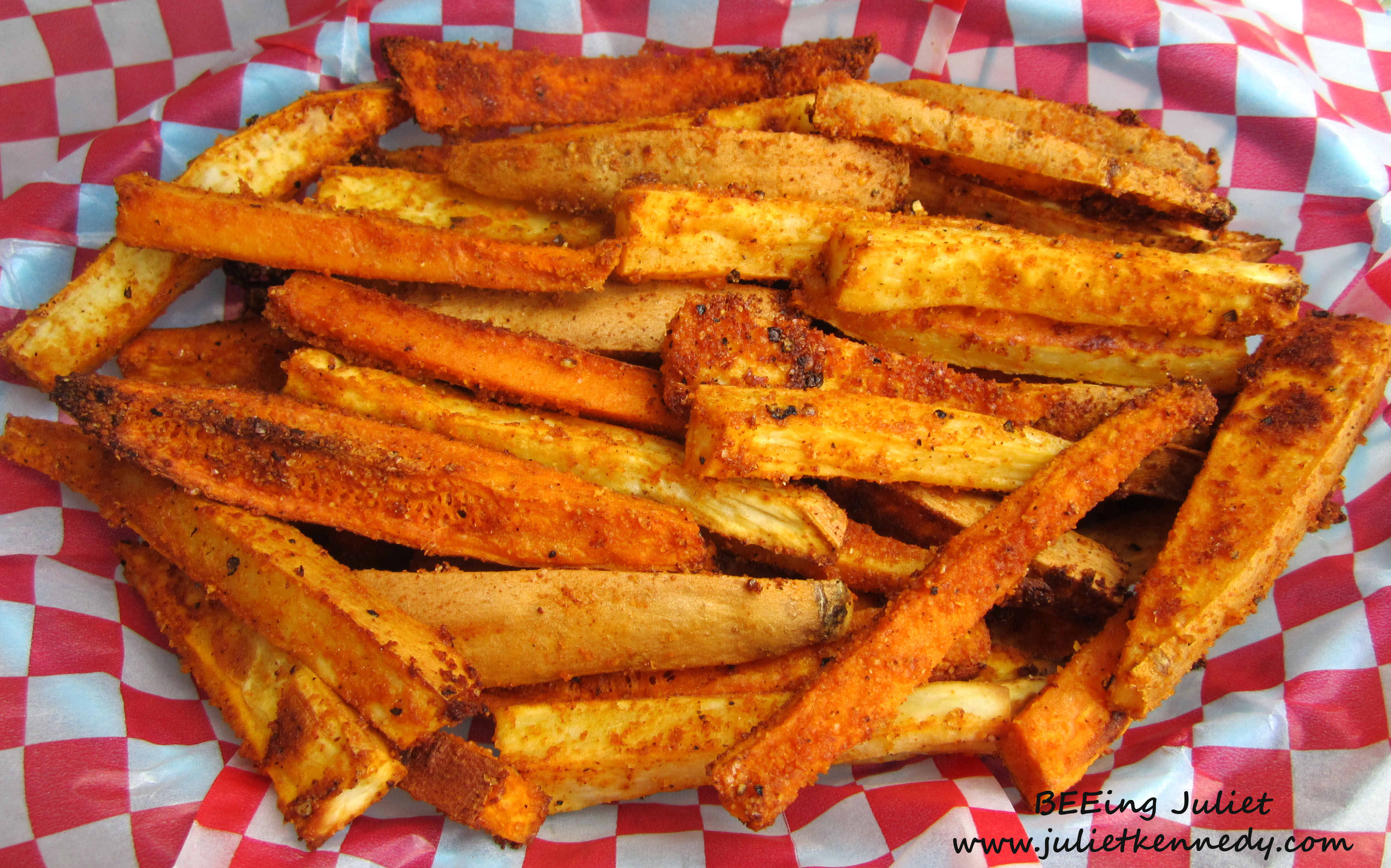 A quick note to those with kids who don’t like spicy dishes ~The fries were a bit too spicy for my son. So next time I make them, I’ll probably divide the wedges into two batches—seasoning one with cayenne and the other without it.